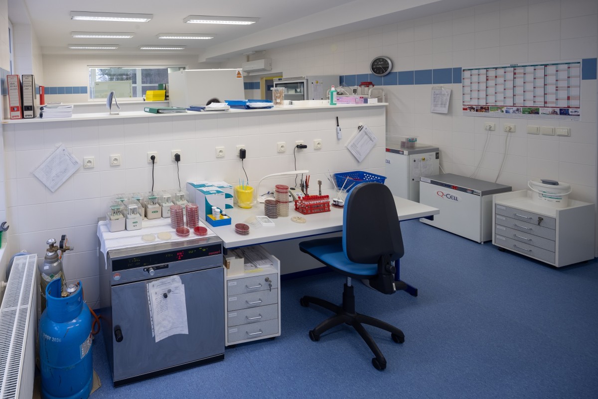 Bakteriologická diagnostika: kultivace klinických materiálů, testování citlivosti na antibiotika.