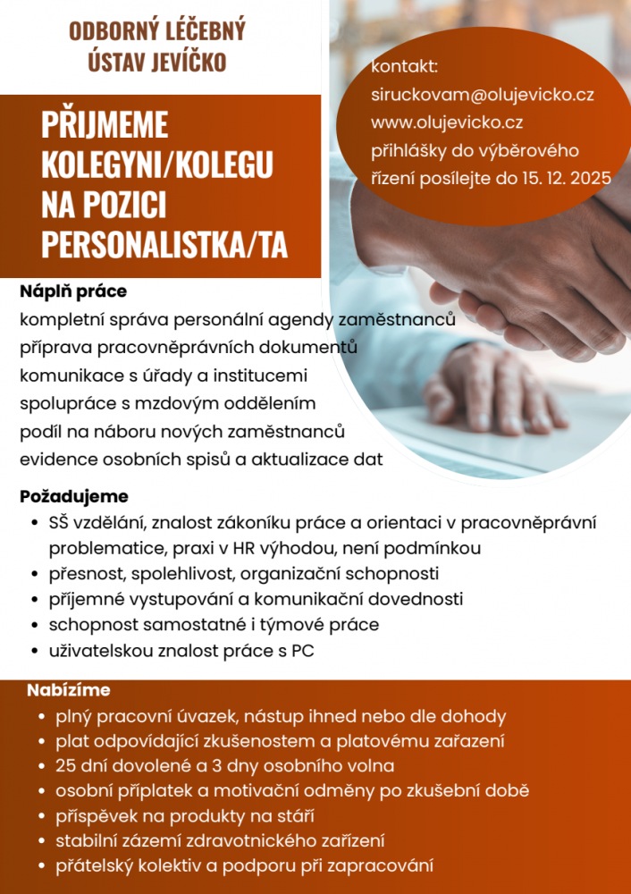 Nabízíme atraktivní a příjemné pracovní prostředí, rodinnou atmosféru, plat odpovídající profesnímu zařazení, po zapracování osobní příplatky, možnost moderního bydlení v krásném prostředí lesoparku OLÚ. Benefity ve formě příspěvků z FKSP, dotovaná strava, 25 dní dovolené, 3 dny sick day, podpora celoživotního vzdělávání.