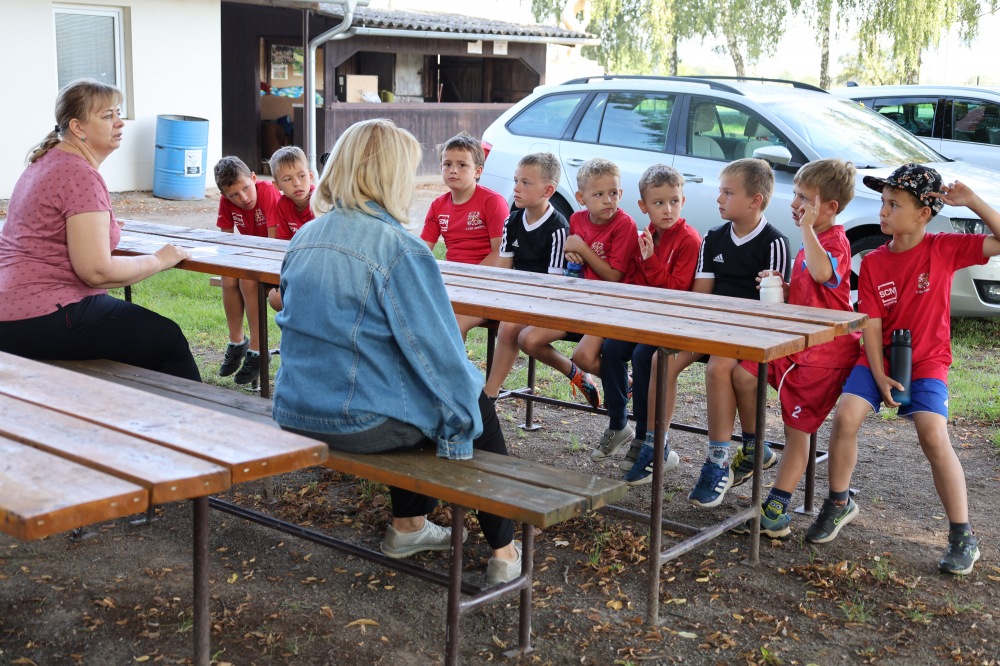 Dne 8. srpna 2025 jsme přijeli na sportovně fotbalový kemp TJ SK Jevíčko, abychom strávili s malými sportovci dopoledne a předali jim znalosti a dovednosti v první pomoci. Se svými kolegyněmi Bc. Ertlovu a Mgr. Pospíšilovou, jsme si připravily tři stanoviště, na kterých jsme malé sportovce zábavnou formou zapojili do různých situací, se kterými se mohou potkat nejen při sportu, ale i v běžných denních situacích s kamarády. Nacvičovali jsme řešení situací, při kterých dojde k běžným odřeninám, krvácení, zlomeninám, úpalu a úžehu, poruchám dýchání, bezvědomí, zástavě srdeční činnosti a dalším ohrožením zdraví. Na jednotlivých stanovištích si vyzkoušeli například použití obvazů na různých částech těla, při různých poraněních, a také použití trojcípého šátku. Dále si nacvičovali postup první pomoci u kamaráda, který má zástavu dýchání nebo člověka se zástavou srdeční činnosti na modelu figuríny a další dovednosti. Strávili jsme s malými sportovci aktivní a naučné dopoledne. Za jejich snahu a aktivitu jsme je odměnili certifikátem o absolvování nácviku první pomoci a malým dárkem.